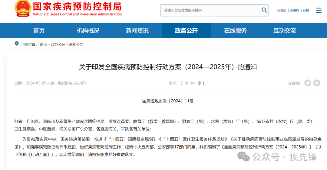 最新!国家疾控局印发全国疾病预防控制行动方案(2024—2025年)及政策解读