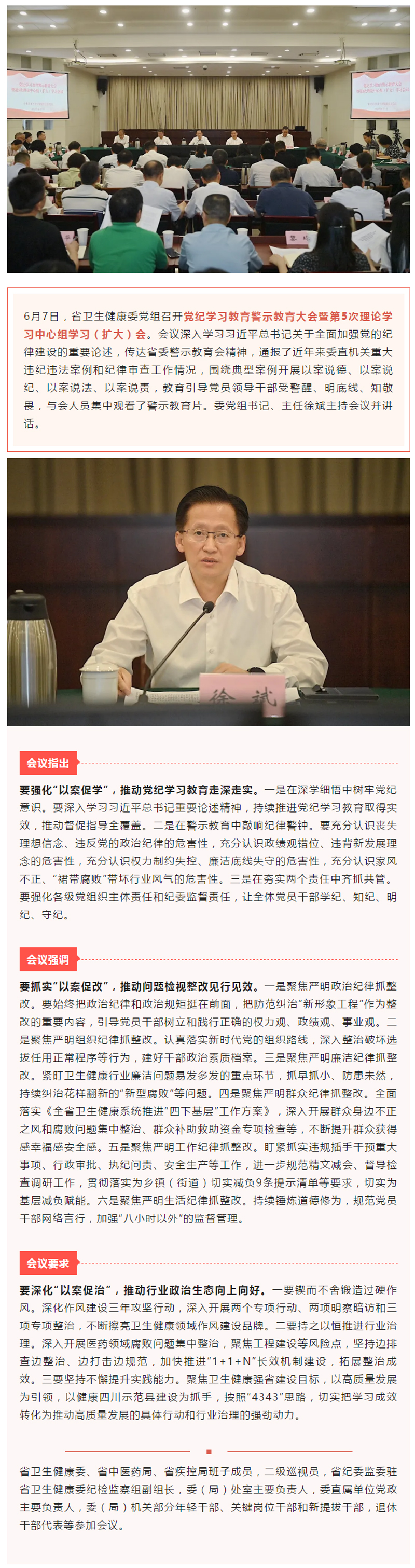 省卫生健康委党组召开党纪学习教育警示教育大会暨第5次理论学习中心组学习(扩大)会议